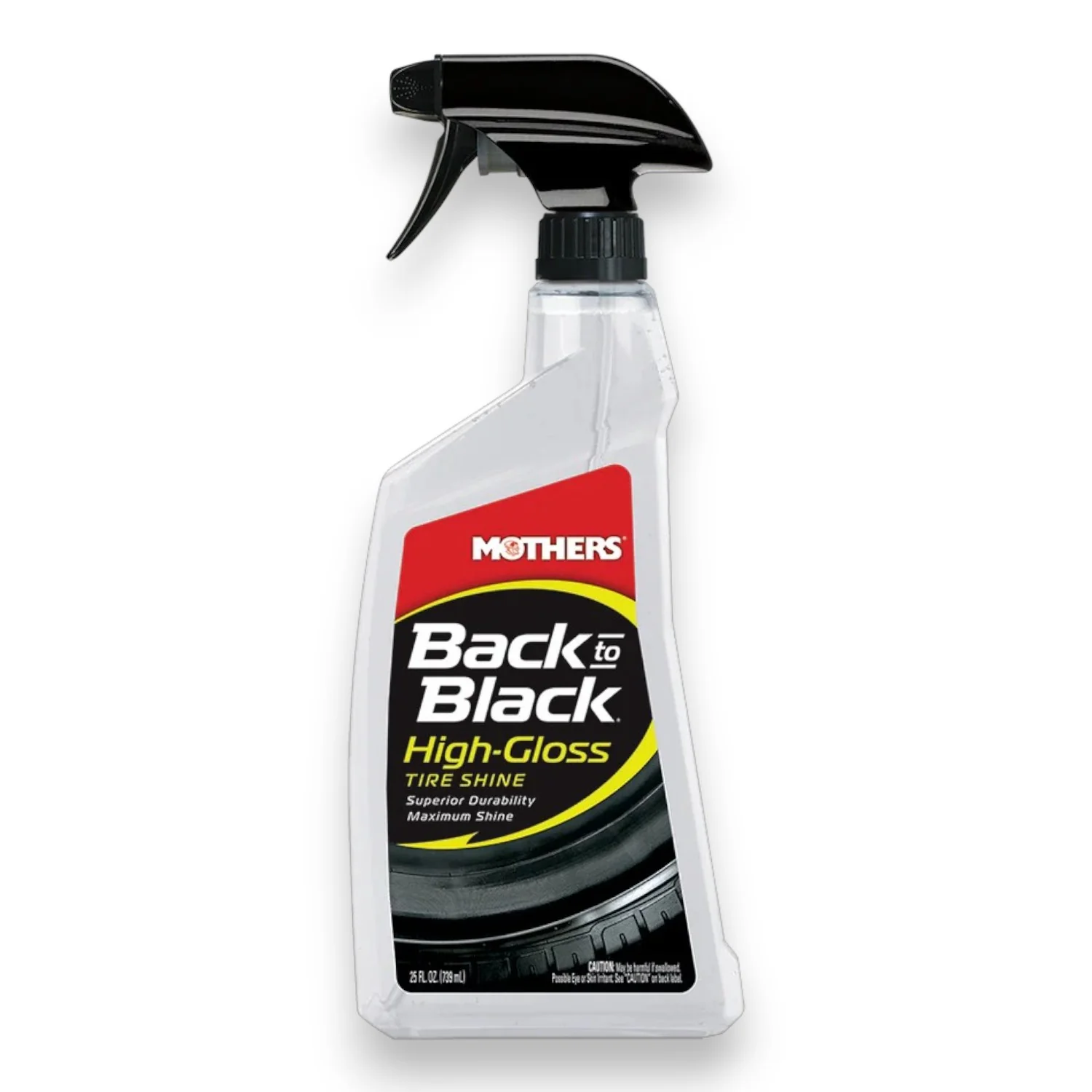 Mothers Back to Black High-Gloss Tire Shine is a spray designed to restore and enhance the appearance of your tires, giving them a deep, long-lasting shine while protecting against fading and cracking.
