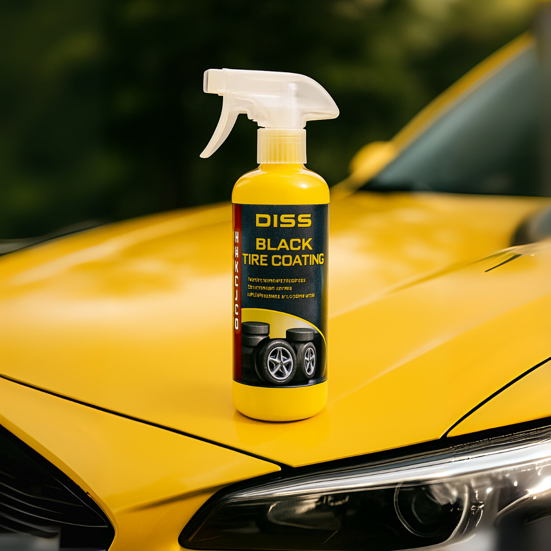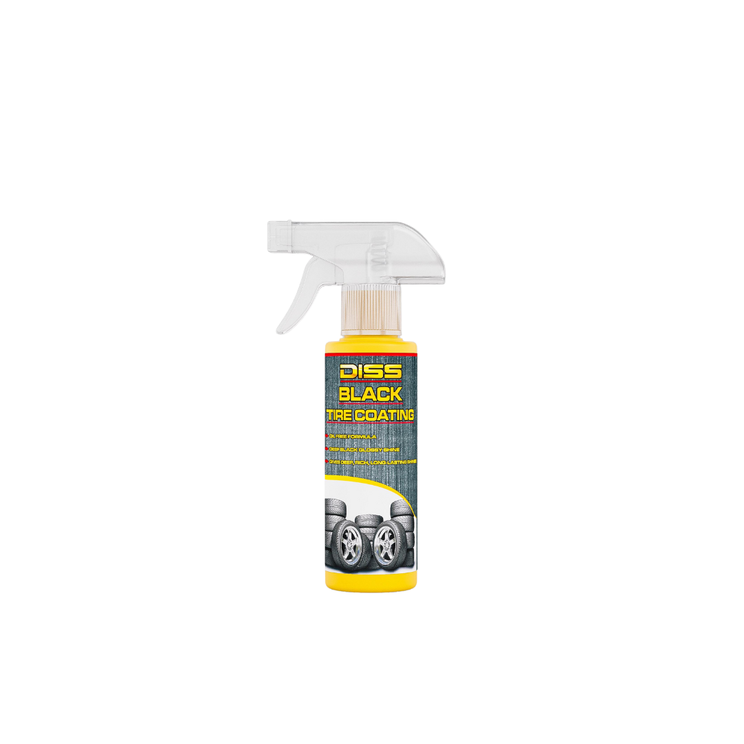 DISS Black Tire Coating is an oil-free formula designed to give your tires a deep, rich black shine with long-lasting results. It enhances the appearance of tires while providing a glossy, durable finish.