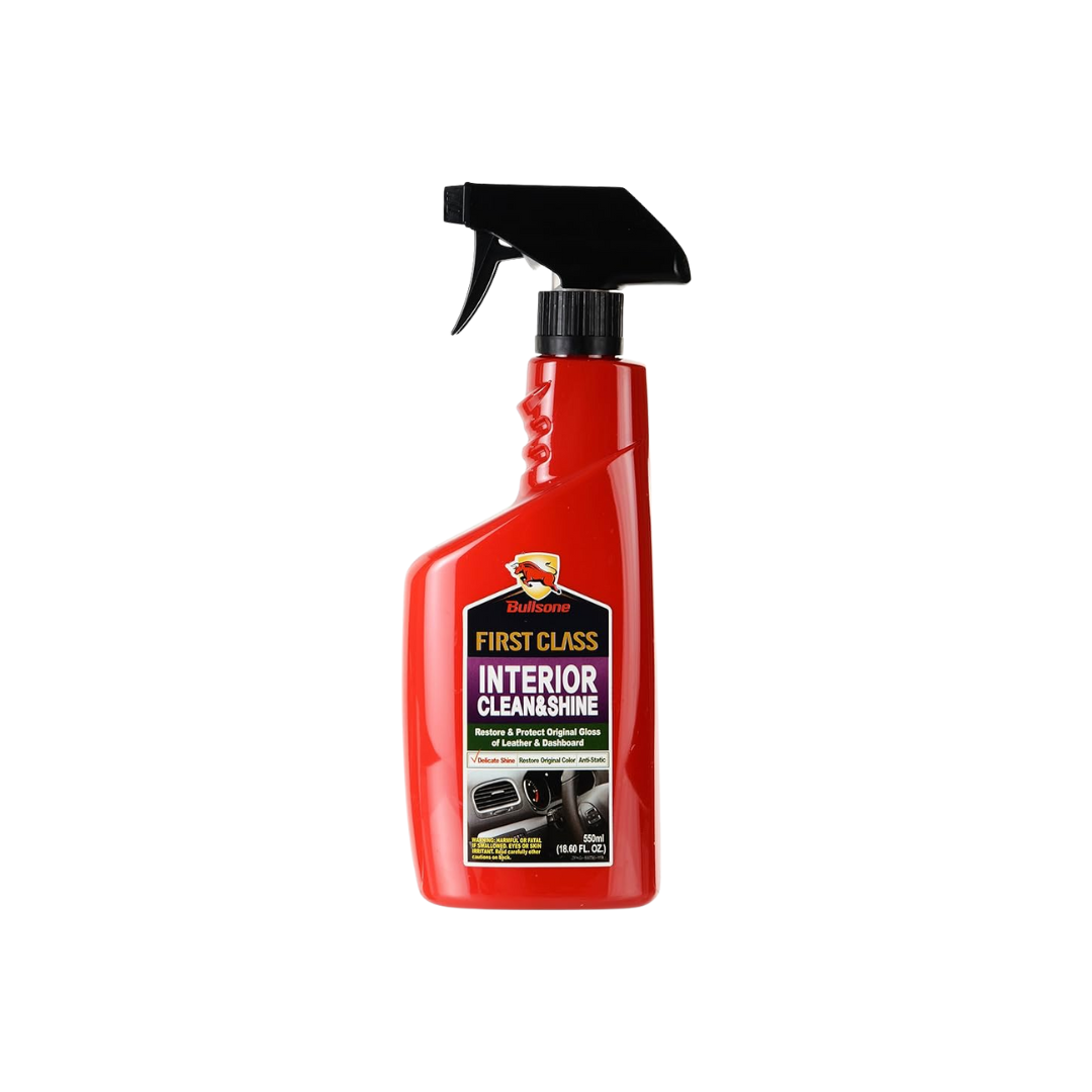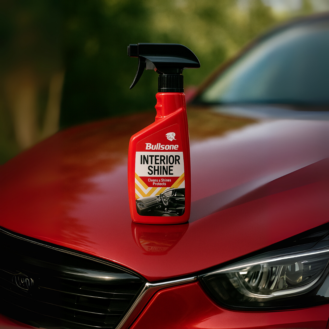 Bullsone Interior Shine is a specialized spray designed to clean, restore, and protect interior car surfaces such as dashboards, door panels, and trim. It provides a fresh, polished look while forming a protective layer that helps guard against dust, UV rays, and fading.