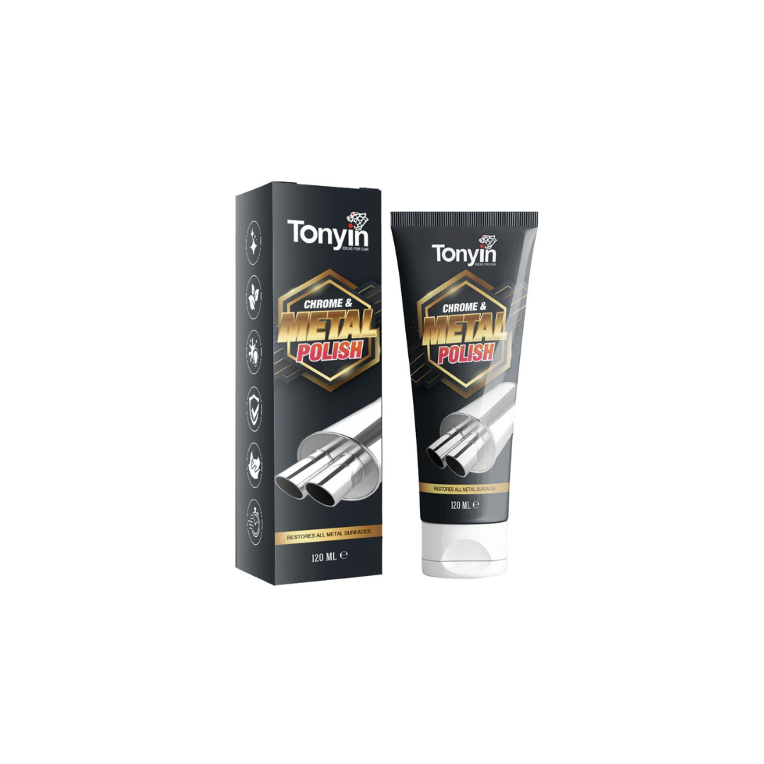 Tonyin metal polish is specially formulated to clean, restore, and protect metal surfaces, leaving them with a brilliant shine. It effectively removes oxidation, tarnish, and minor scratches for a polished, like-new appearance.