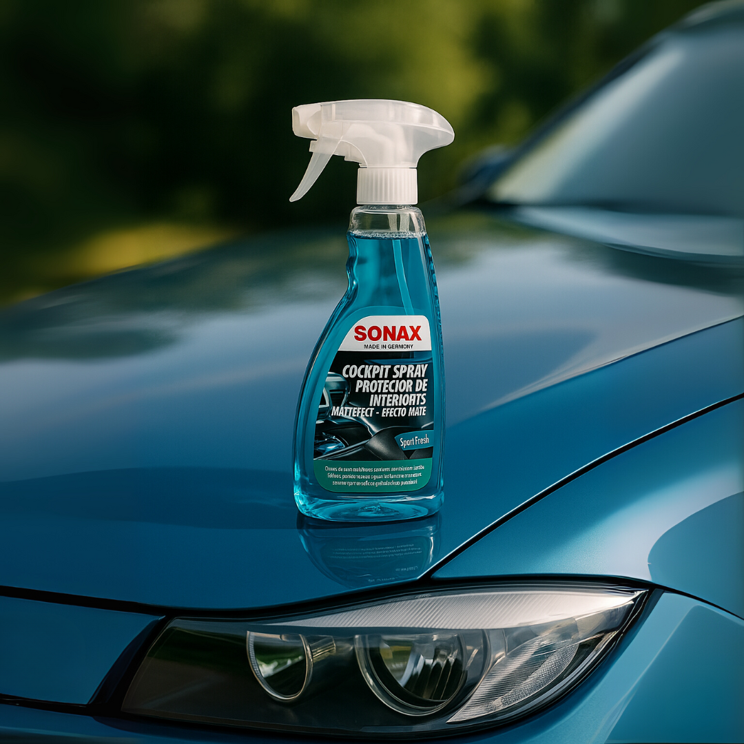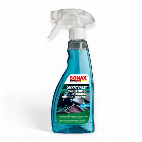 SONAX Cockpit Spray is a specialized interior cleaner and protectant designed to gently clean and maintain dashboards and plastic trim, leaving a non-reflective matte finish and a fresh scent. It helps preserve the original appearance of interior surfaces.