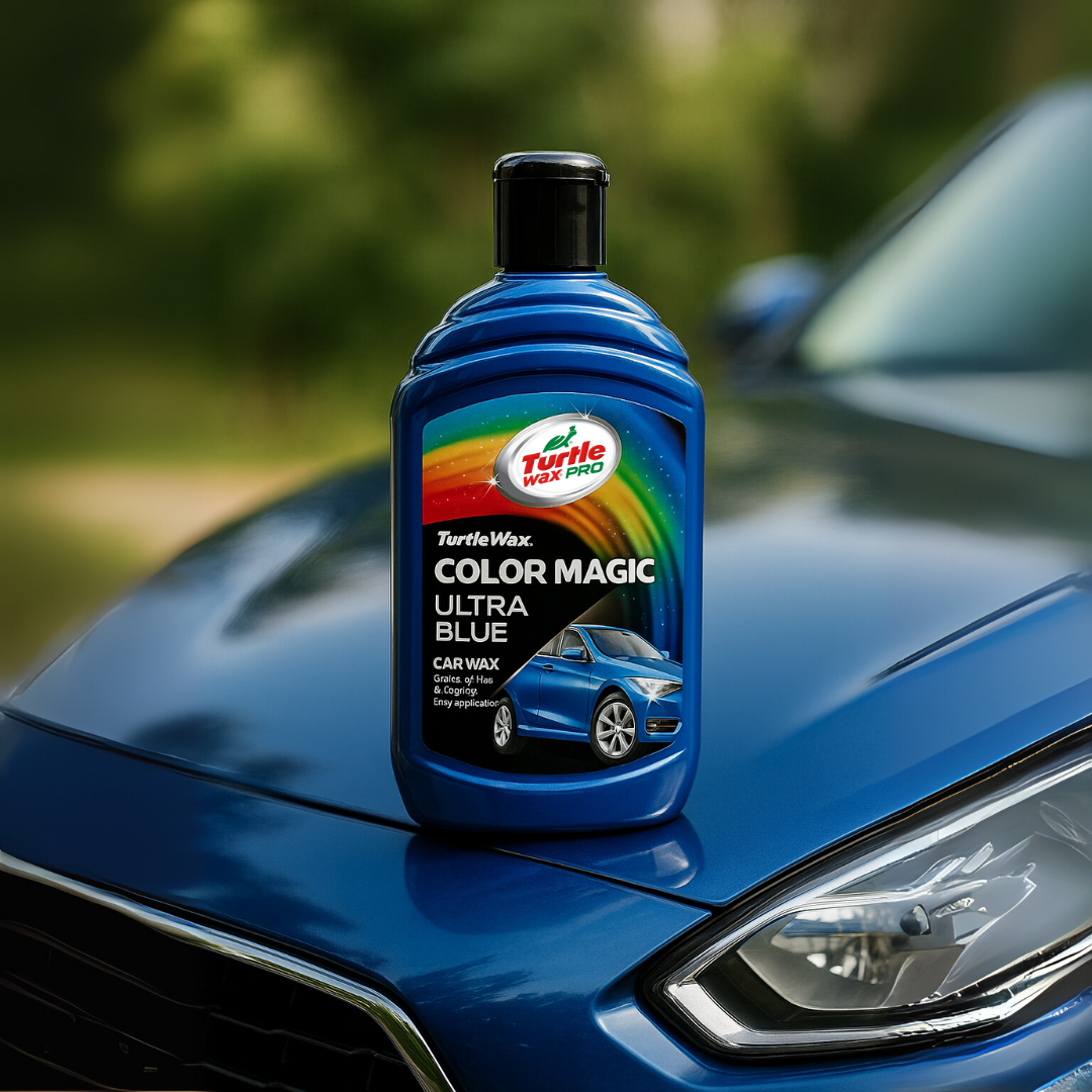 Turtle Wax Color Magic Ultra Blue Car Wax is a specially formulated wax designed to clean, shine, and restore blue and similarly colored vehicles. It enhances color depth, covers minor scratches, and leaves a brilliant, long-lasting shine.