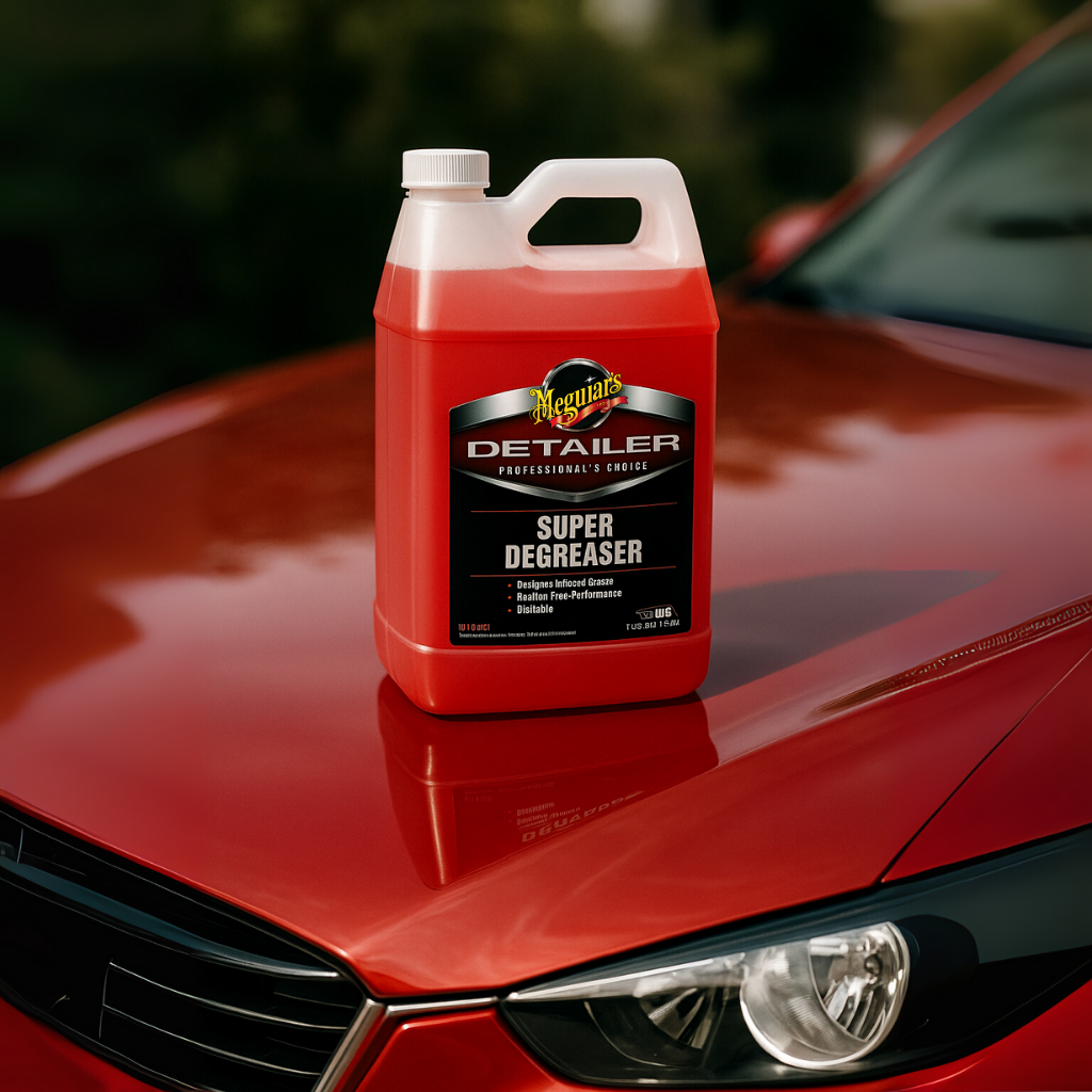 Meguiar's Detailer Super Degreaser is a professional-grade formula designed to quickly break down and remove tough grease, grime, and oil from engines, wheels, and other automotive surfaces. It rinses clean without leaving any residue, making it ideal for both professional detailers and car enthusiasts.