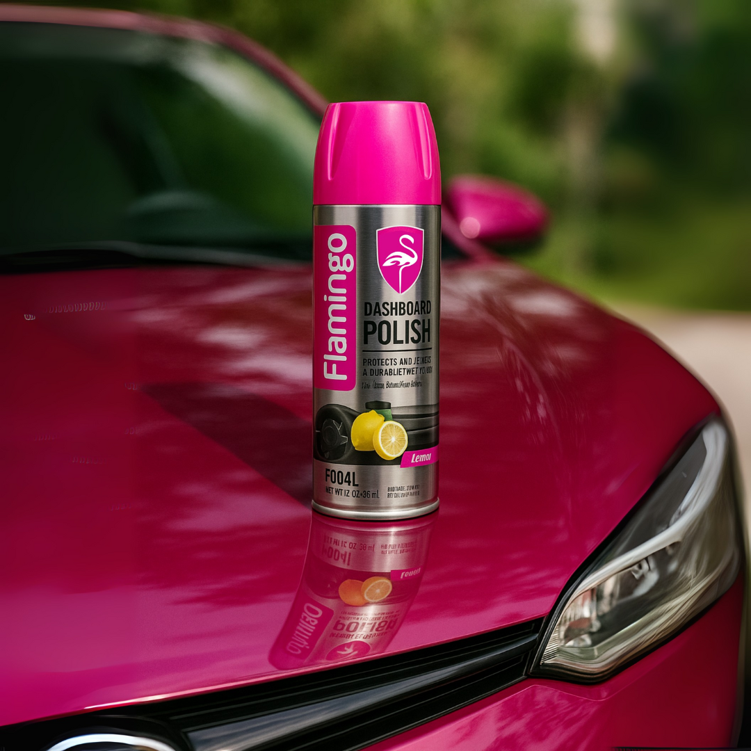 Flamingo Dashboard Polish is a high-performance spray designed to clean, shine, and protect your vehicle’s interior surfaces. Ideal for dashboards, vinyl, rubber, and plastic, it leaves a sleek, non-greasy finish with a fresh lemon scent and durable UV protection.