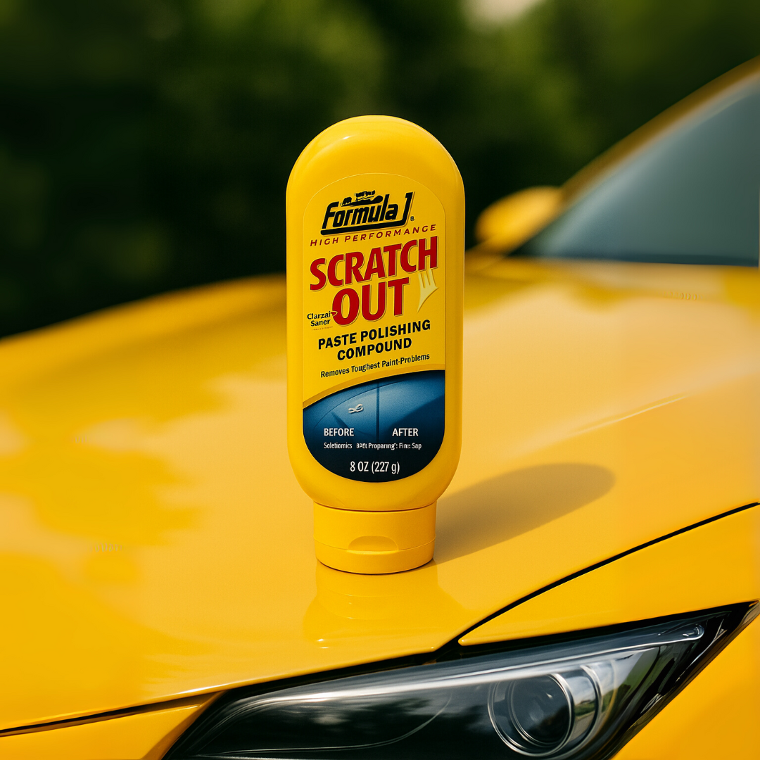 Formula 1 Scratch Out is a high-performance paste polishing compound designed to safely remove surface scratches, swirl marks, oxidation, and paint blemishes from your vehicle's clear coat. Ideal for personal or professional use, it restores your carβs finish to a smooth, glossy shine.