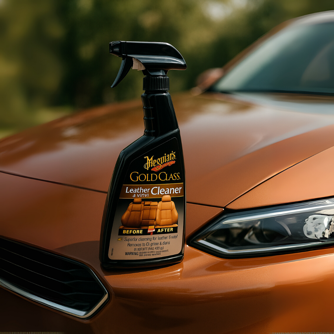 Meguiar's Gold Class Leather & Vinyl Cleaner is a gentle yet effective spray designed to clean leather and vinyl surfaces without drying or damaging them. It removes dirt, grime, and stains while preserving the natural look and feel of your interior.
