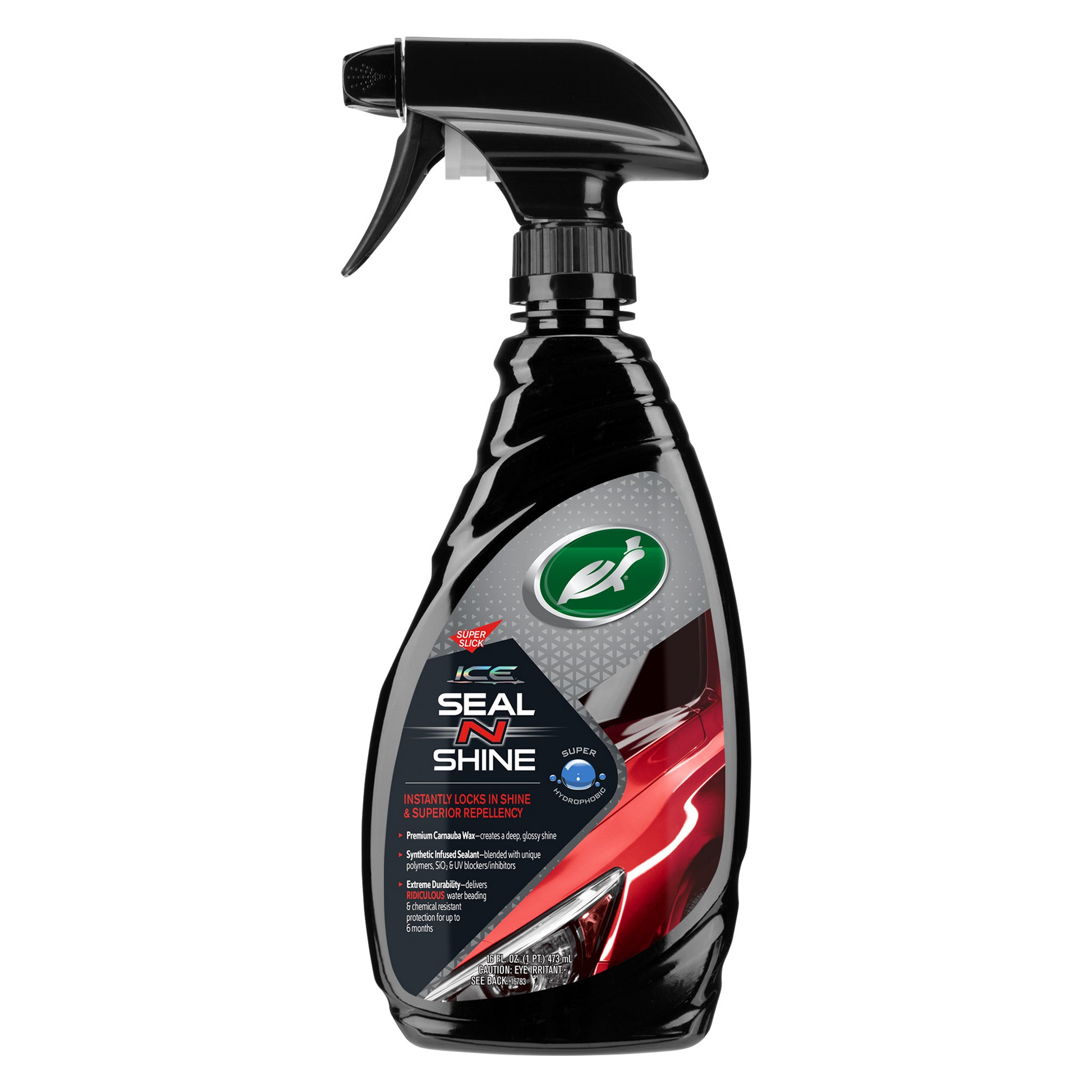 ICE Seal N Shine is a spray sealant that instantly locks in shine and provides superior water repellency for automotive paint. It combines premium carnauba wax with advanced synthetic sealants for long-lasting protection and a deep, glossy finish.