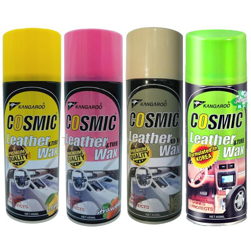 Kangaroo Cosmic Leather & Tire Wax is a multi-purpose spray designed to clean, shine, and protect leather, vinyl, and tire surfaces. Formulated in Korea and available in multiple refreshing scents, it restores and enhances interior and exterior surfaces, leaving them conditioned and looking like new.