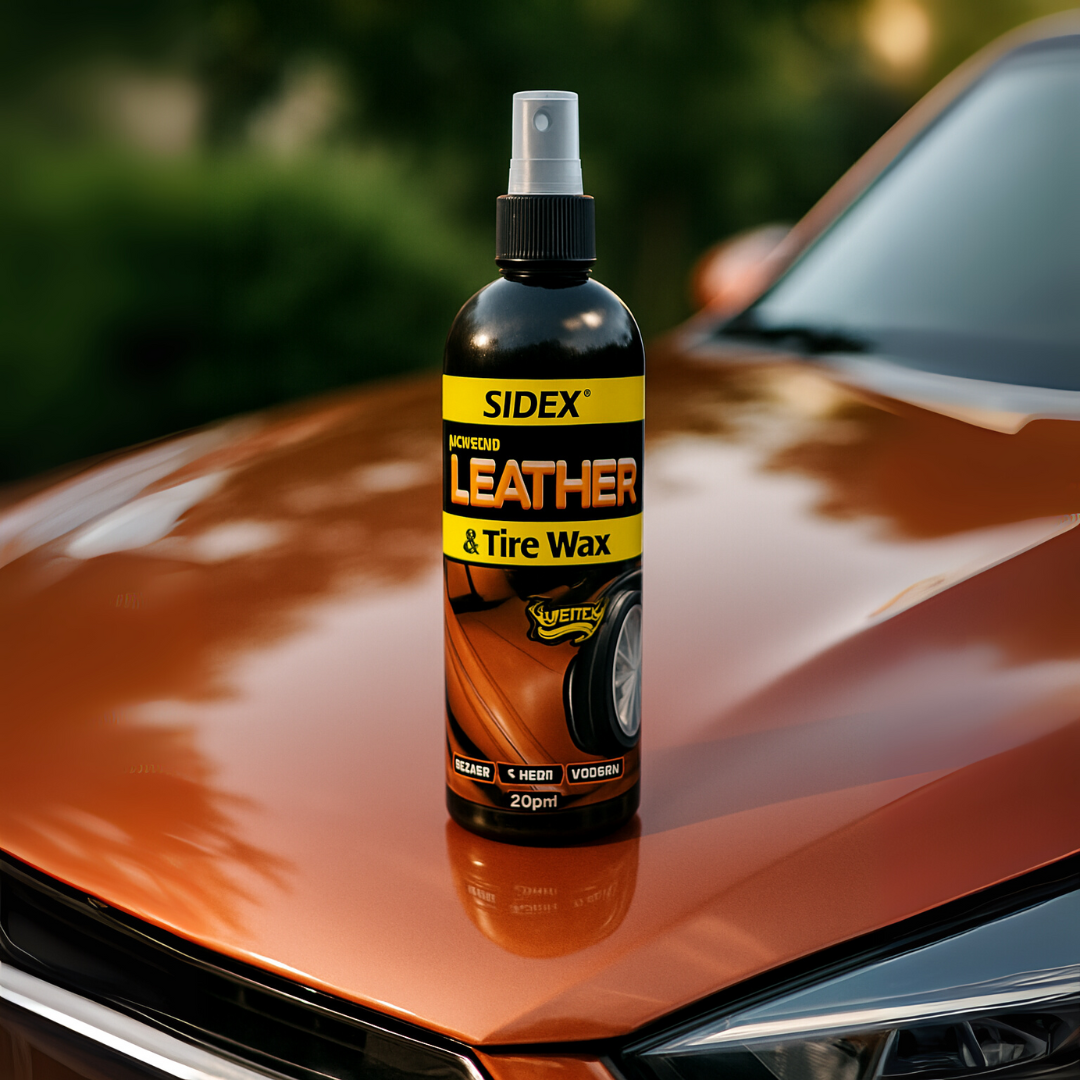 SIDE-X Leather and Tire Wax is a dual-purpose spray that cleans, shines, and protects both leather interiors and tire surfaces. Formulated for convenience and performance, it restores the natural look and feel of leather while enhancing tire depth and shine.