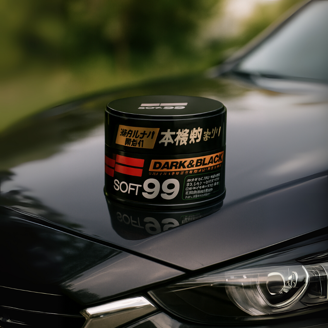 Soft99 Dark & Black Wax is specially formulated for dark and black color car bodies. Made with pure carnauba, it enhances depth, gloss, and color richness while offering strong protection against UV rays, dirt, and water. Ideal for achieving a deep, mirror-like finish on darker paint.
