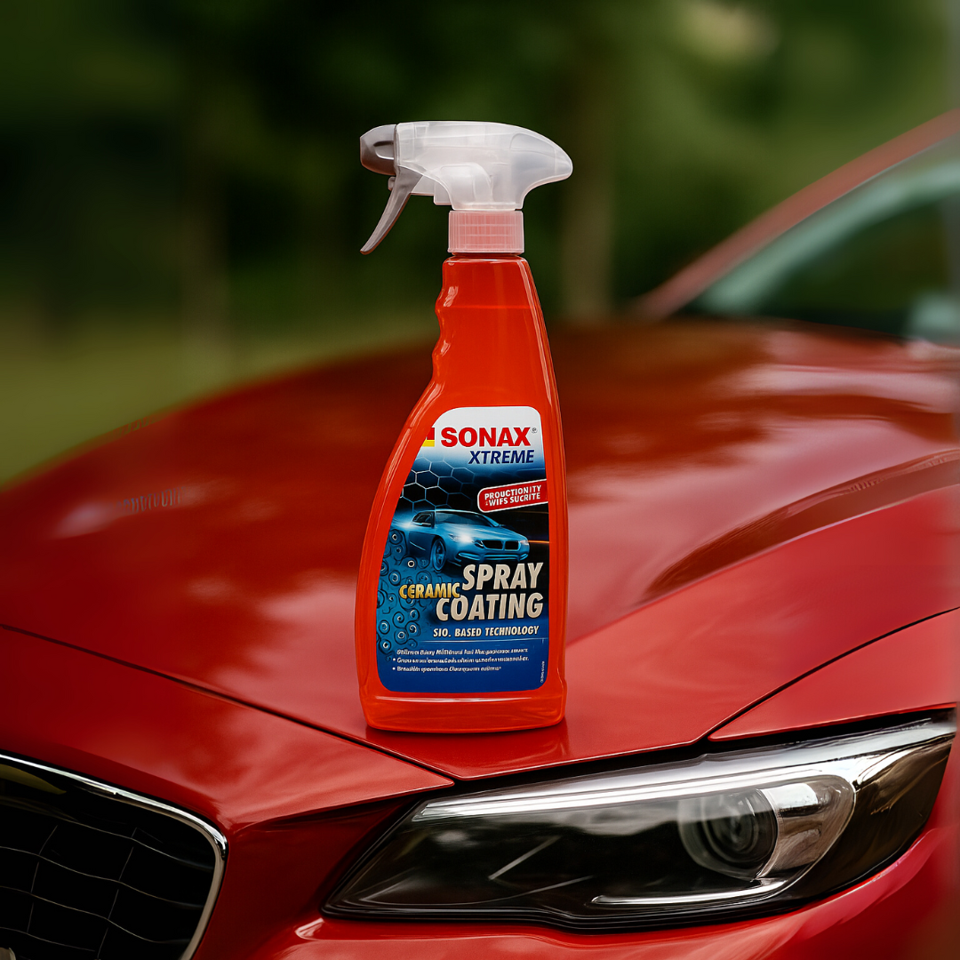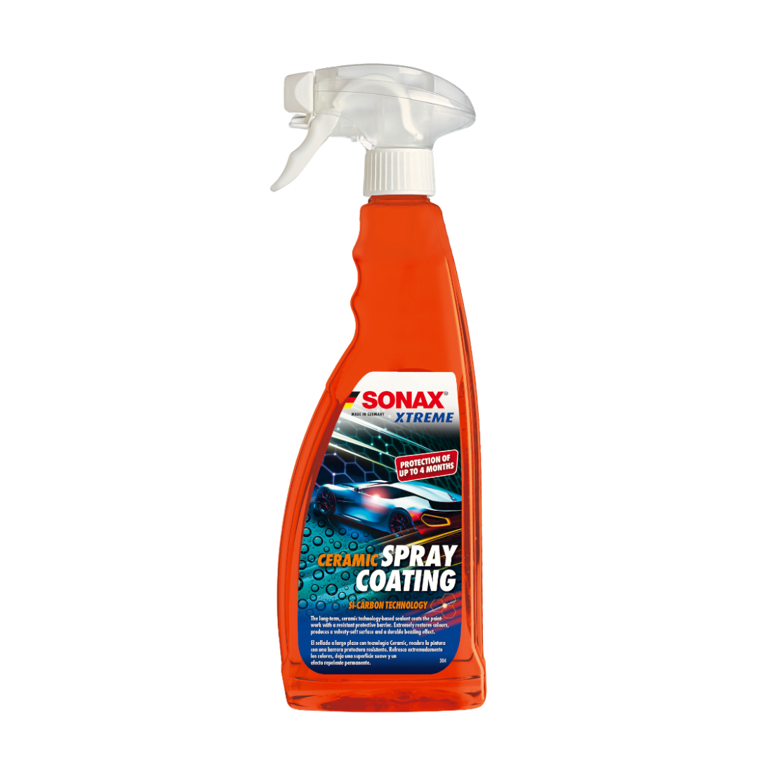SONAX XTREME Ceramic Spray Coating offers advanced protection for vehicle paint using cutting-edge carbon and ceramic technology. It creates a hydrophobic, high-gloss barrier that shields the surface from dirt, water, and environmental damage for up to 4 months.
