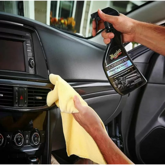 Meguiar's Ultimate Interior Detailer is an advanced spray cleaner and protectant for all interior surfaces. It quickly removes dust, dirt, and grime while leaving a non-greasy, satin finish and providing UV protection to prevent fading and cracking.