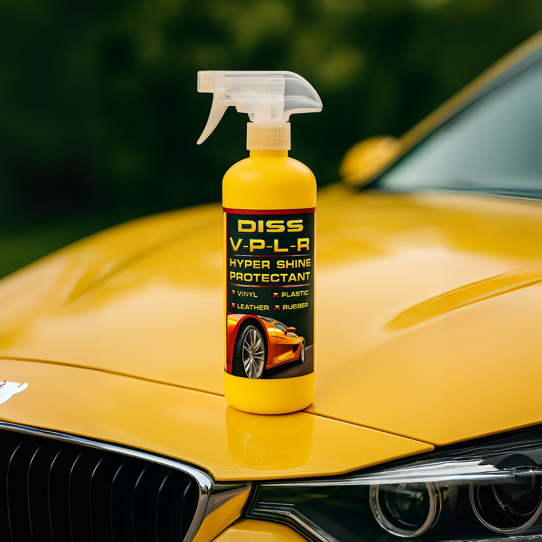 DISS V-P-L-R Hyper Shine Protectant is a versatile formula designed to restore and protect the shine of vinyl, plastic, leather, and rubber surfaces in your vehicle. It delivers a long-lasting, high-gloss finish while safeguarding against fading and cracking.
